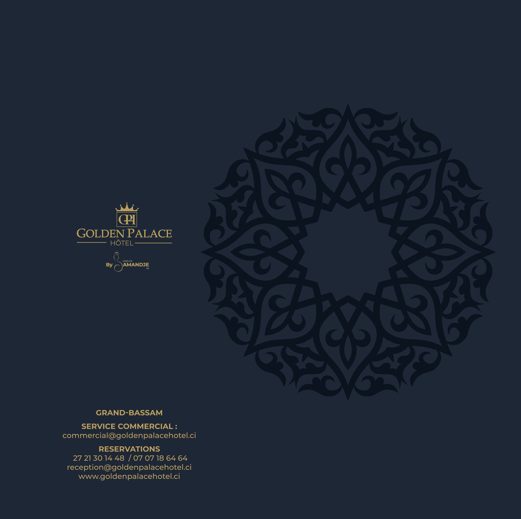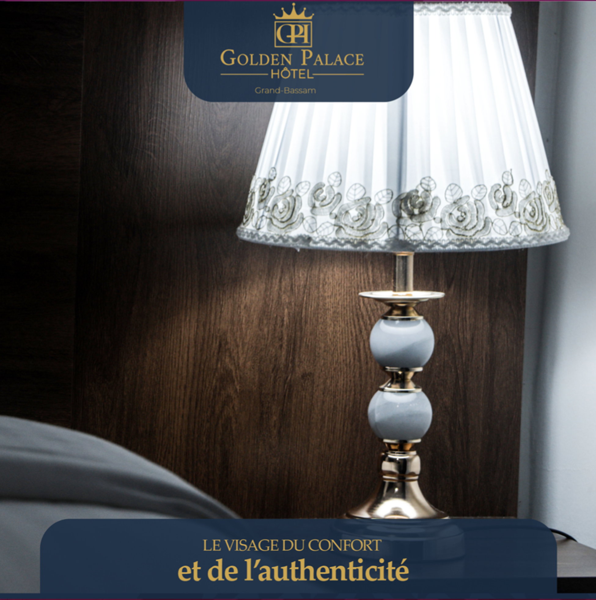 Entre ciel et terre, mer et lagune, luxe et authenticité, la ville de Grand-Bassam offre non seulement un décor prestigieux pour vos événements sous les meilleurs auspices, mais elle est également le circuit idéal pour vos découvertes touristiques. Situé en Côte d'Ivoire, dans la ville balnéaire de Grand Bassam, ville qui a été classé patrimoine mondial de l'UNESCO, en raison de ses vestiges et ses monuments datant de l'époque Coloniale, GOLDEN PALACE HÔTEL, est un hôtel 4 étoiles