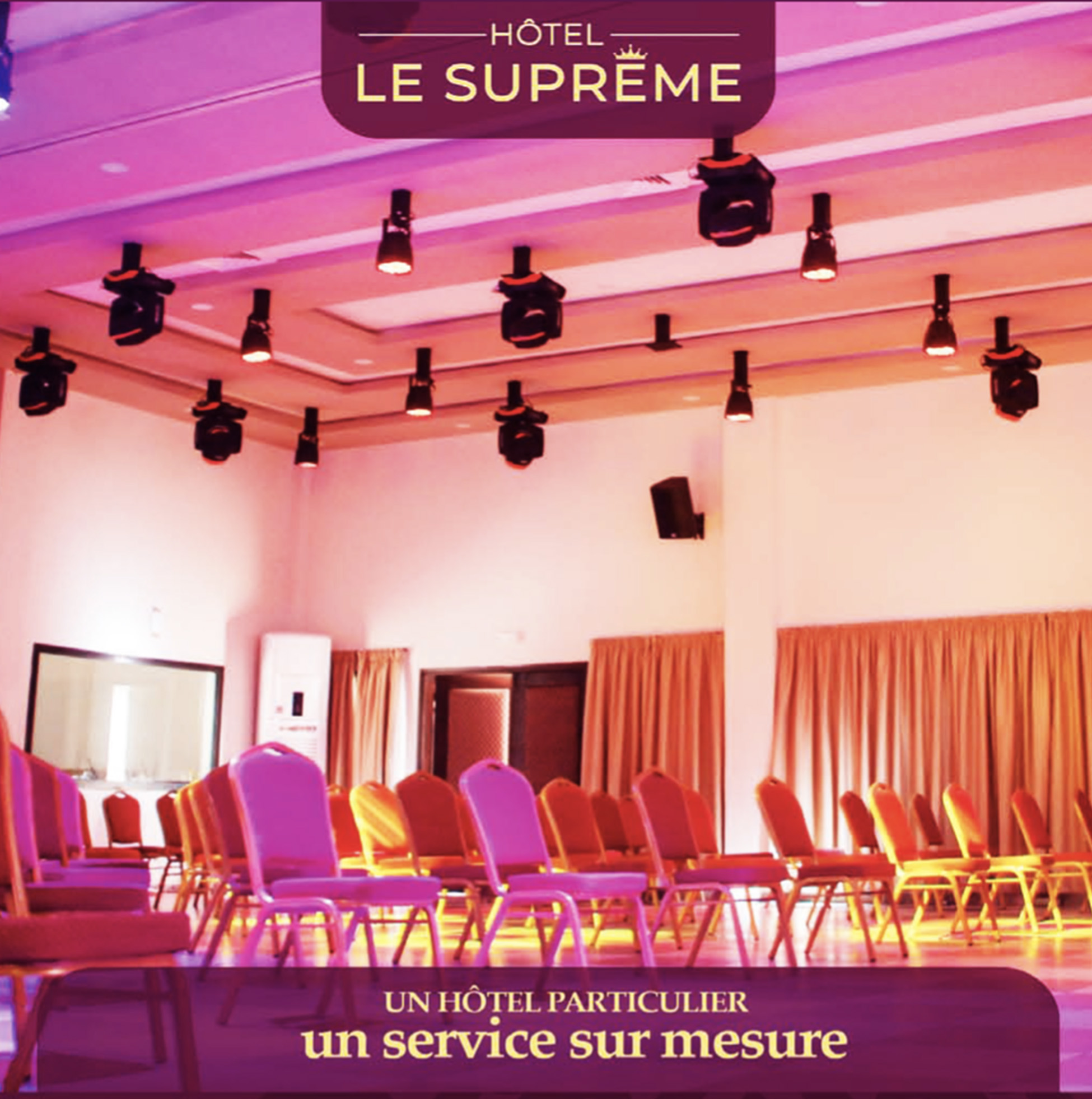 Avec nos 106 chambres (Standards, Exécutives et Suites), l’hôtel Suprême dispose de 2 restaurants dont l’un, panoramique, et accessible par l’ascenseur offrant une belle vue à ses invités, et l’autre est attenant à la piscine. À cela il convient d’ajouter le bar climatisé, le café shop, ses 10 salles de conférences, de séminaires et de réunions dont son nouvel auditorium de 200 places modulable en 02 salles de plus de 50 personnes.