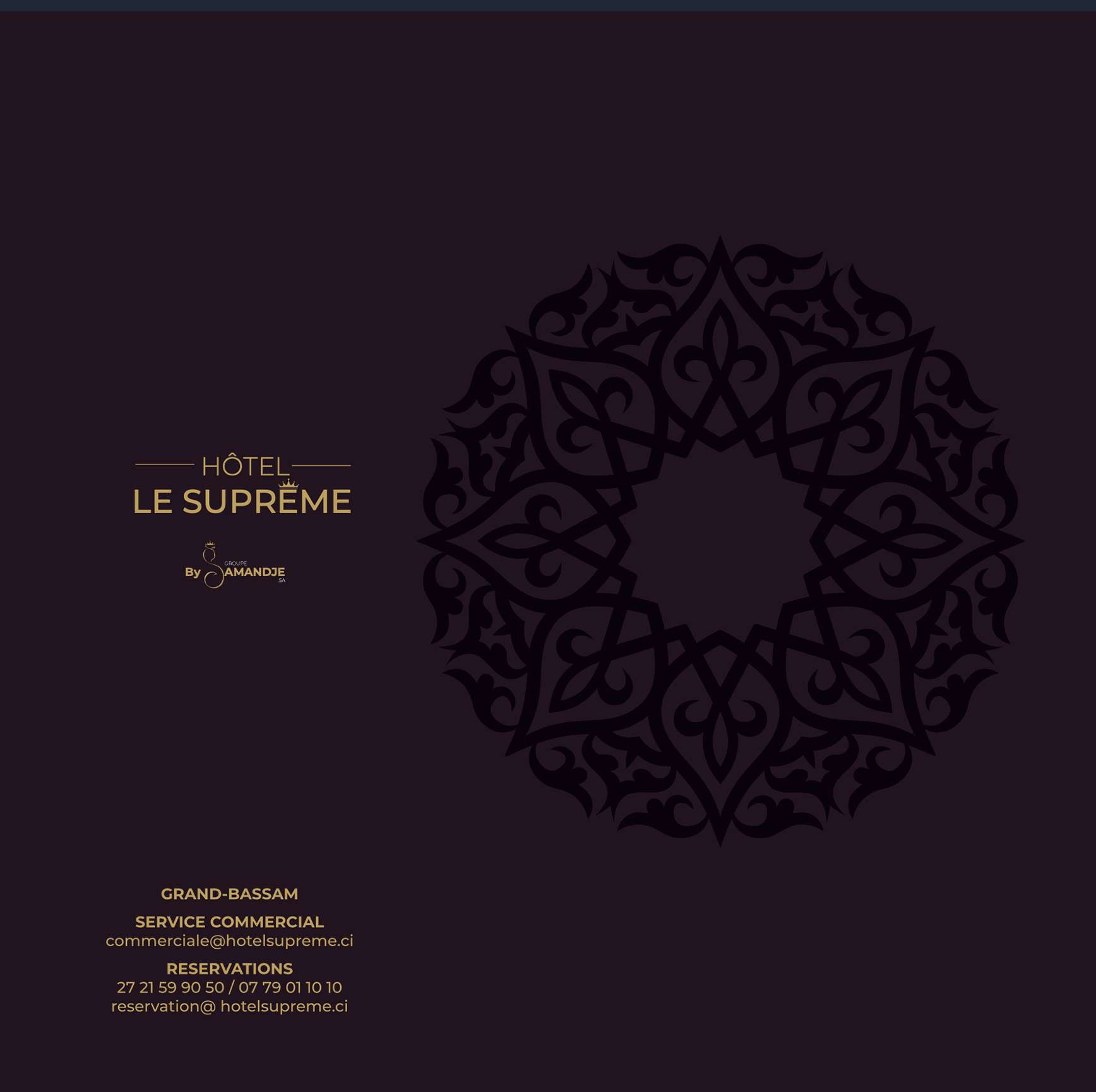 Alliant tradition contemporaine et élégance, L’Hôtel Le Suprême de Grand-Bassam est un superbe hôtel situé à Mockeville, l'un des quartiers les plus prestigieux de la ville de Grand-Bassam classée au patrimoine mondial de l’UNESCO.